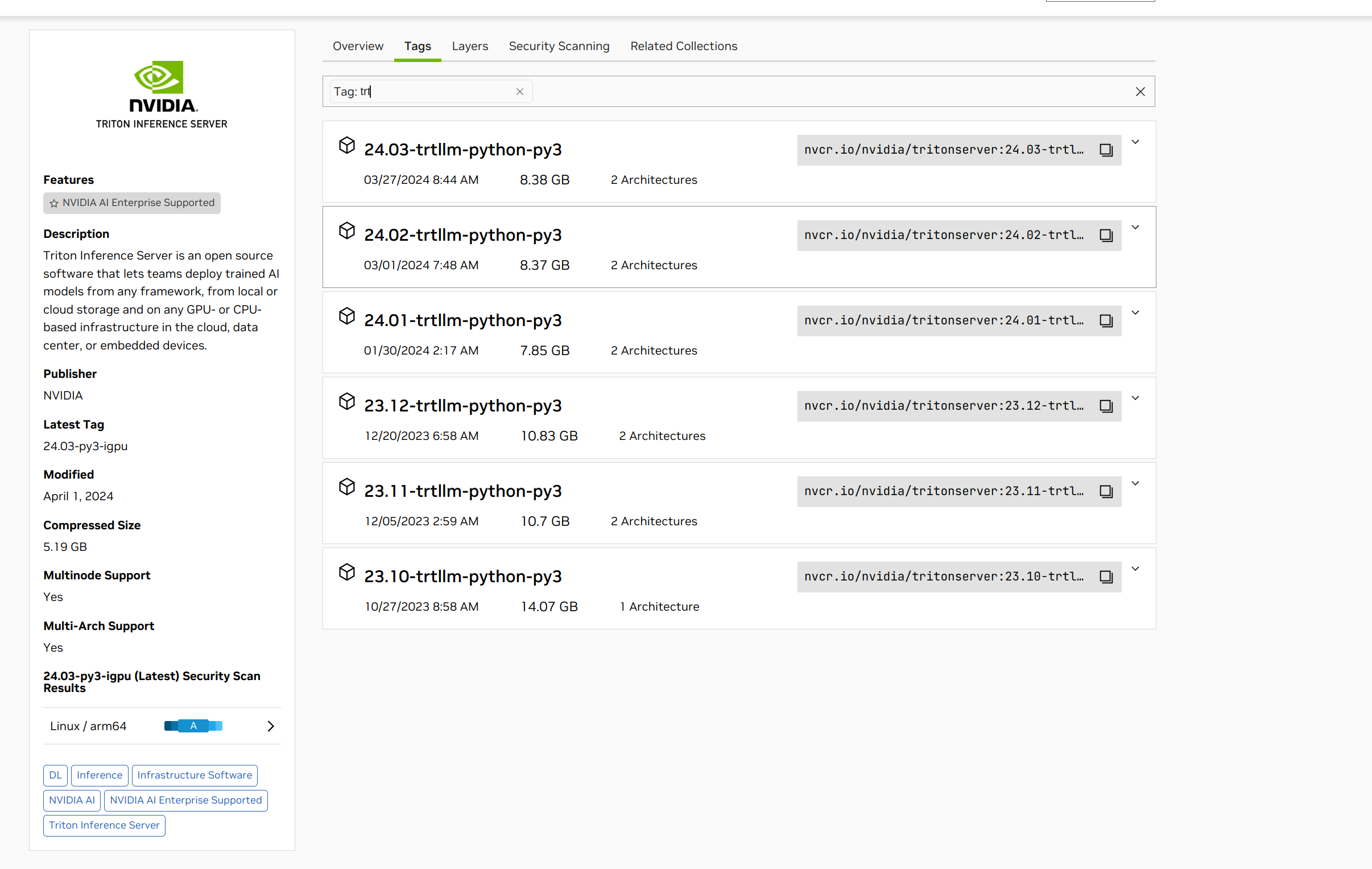 1 docker pull nvcr.io/nvidia/tritonserver:24.03-trtllm-python-py3