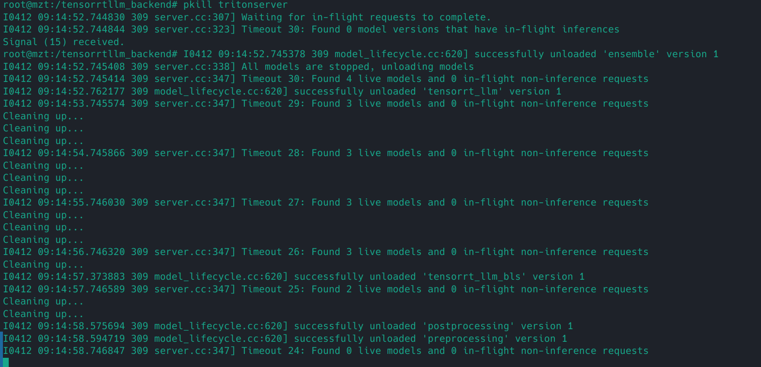 1 2 3 4 5 6 7 8 9 10 docker run -d \ --name triton \ --net host \ --shm-size=2g \ --ulimit memlock=-1 \ --ulimit stack=67108864 \ --gpus all \ -v ${PWD}/tensorrtllm_backend:/tensorrtllm_backend \ -v ${PWD}/Qwen-TensorRT-LLM/examples:/root/examples \ nvcr.io/nvidia/tritonserver:24.02-trtllm-python-py3 sleep 864000