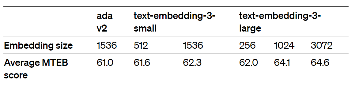 defget_embeddings(texts, model="text-embedding-ada-002", dimensions=None): '''封装 OpenAI 的 Embedding 模型接口''' if model == "text-embedding-ada-002": dimensions = None if dimensions: data = client.embeddings.create( input=texts, model=model, dimensions=dimensions).data else: data = client.embeddings.create(input=texts, model=model).data return [x.embedding for x in data]