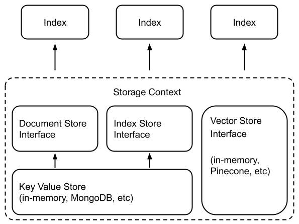 1 2 3 4 5 6 7 8 9 10 11 from llama_index.core.storage.docstore import SimpleDocumentStorefrom llama_index.core.storage.index_store import SimpleIndexStorefrom llama_index.core.vector_stores import SimpleVectorStorefrom llama_index.core import StorageContext storage_context = StorageContext.from_defaults( docstore=SimpleDocumentStore(), vector_store=SimpleVectorStore(), index_store=SimpleIndexStore(), )