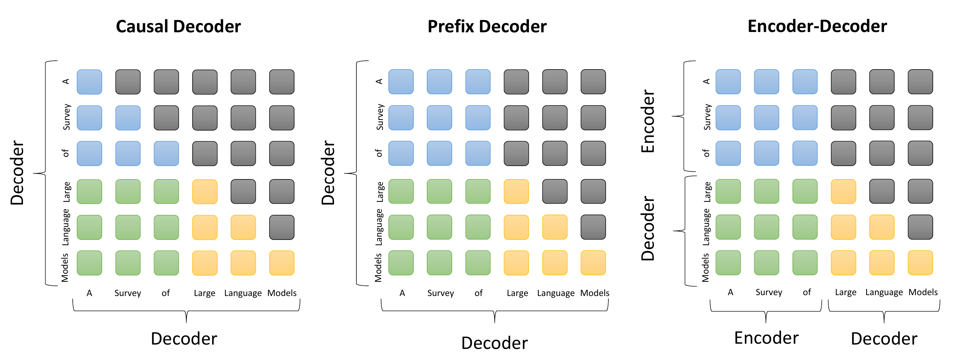 - LLM主流框架:Causal Decoder、Prefix Decoder和Encoder-Decoder