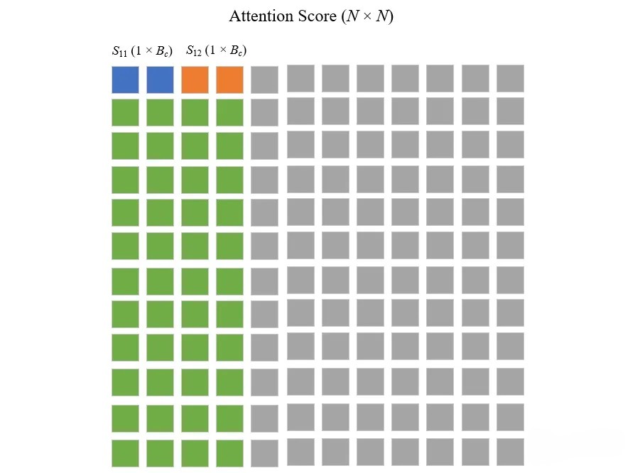 为了提高并行性,FlashAttention将注意力矩阵划分为较小的图块,行也被拆分以计算partial