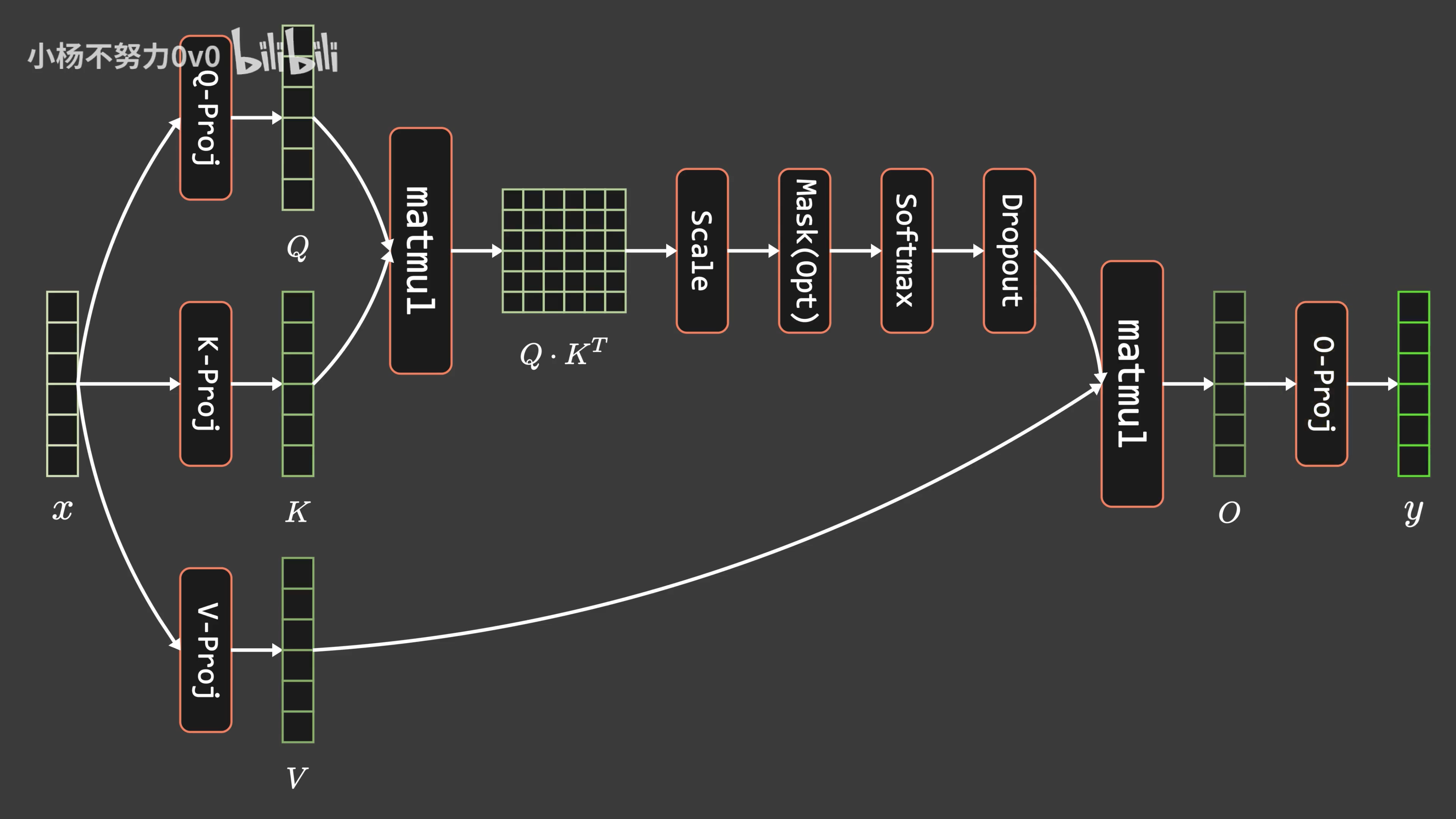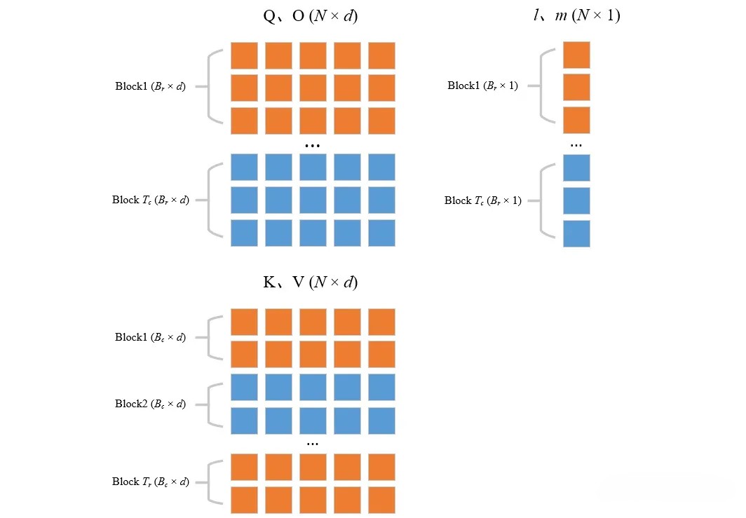 分块计算的难点是什么呢?注意力机制的计算过程是“矩阵乘法 --> scale --> mask --> softmax --> dropout --> 矩阵乘法”,矩阵乘法和逐点操作(scale,mask,dropout)的分块计算是容易实现的,难点在于softmax的分块计算。由于计算softmax的归一化因子(分母)时,需要获取到完整的输入数据,进行分块计算的难度比较大。