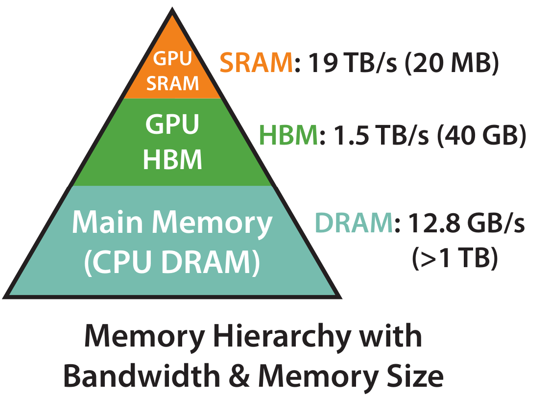 - GPU有大量的线程来执行某个操作,称为kernel。GPU执行操作的典型方式分为三步:(1)每个kernel将输入数据从低速的HBM中加载到高速的SRAM中;(2)在SRAM中,进行计算;(3)计算完毕后,将计算结果从SRAM中写入到HBM中。