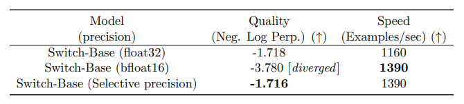 格式,而在其他计算过程中则采用全精度。降低精度能够显著减少处理器间的通信成本、计算成本以及存储数据的内存需求。但初期实验中,无论是专家系统还是门控网络都采用