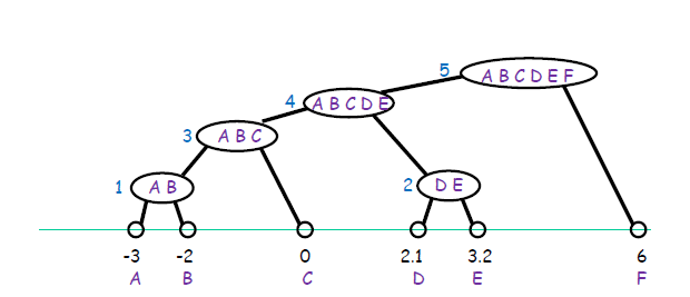 DIANA(Divisive Analysis)算法属于分裂的层次聚类,首先将所有的对象初始化到一个簇中,然后根据一些原则(比如最邻近的最大欧式距离),将该簇分类。直到到达用户指定的簇数目或者两个簇之间的距离超过了某个阈值。