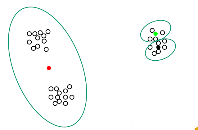 簇的直径:在一个簇中的任意两个数据点都有一个欧氏距离,这些距离中的最大值是簇的直径