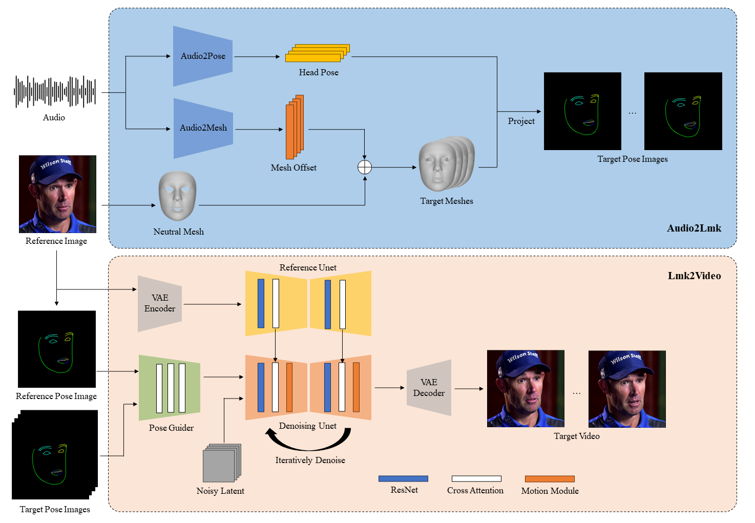 - Audio2Photoreal:将对话音频作为输入并生成相应的面部代码和身体手部姿势。然后,输出姿势被输入到经过训练的头像渲染器中,生成逼真的视频。(https://github.com/facebookresearch/audio2photoreal)