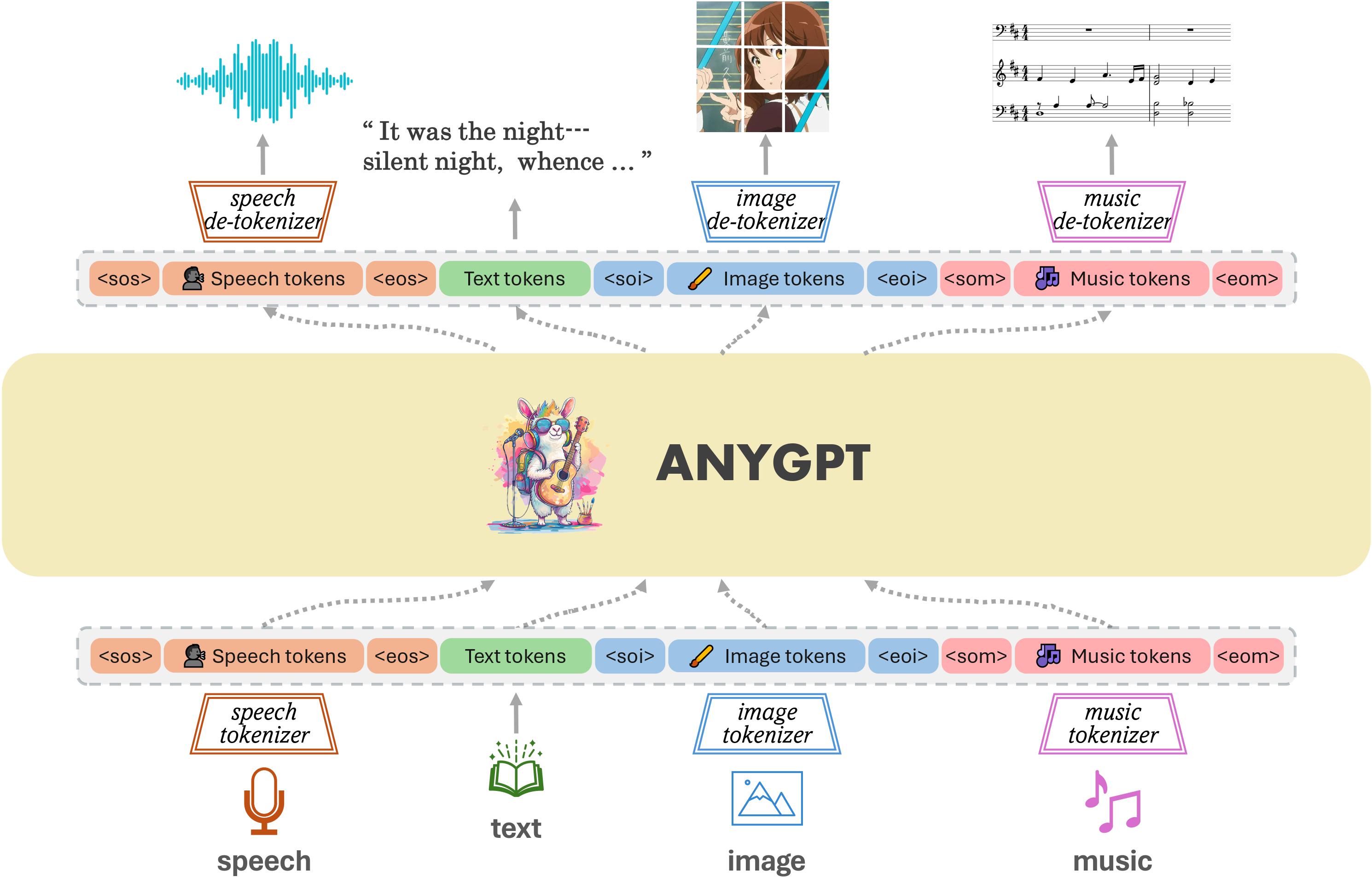 - AnyGPT:Unified Multimodal LLM with Discrete Sequence Modeling