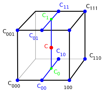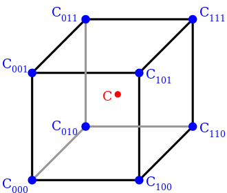 上述操作可以形象化如下:首先,找到围绕需要插值点立方体的八个角。