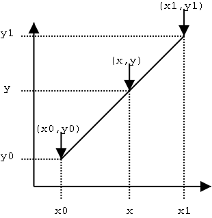 假设已知坐标 与 ,要得到 区间内某一位置 在直线上的值。根据图中所示,得到