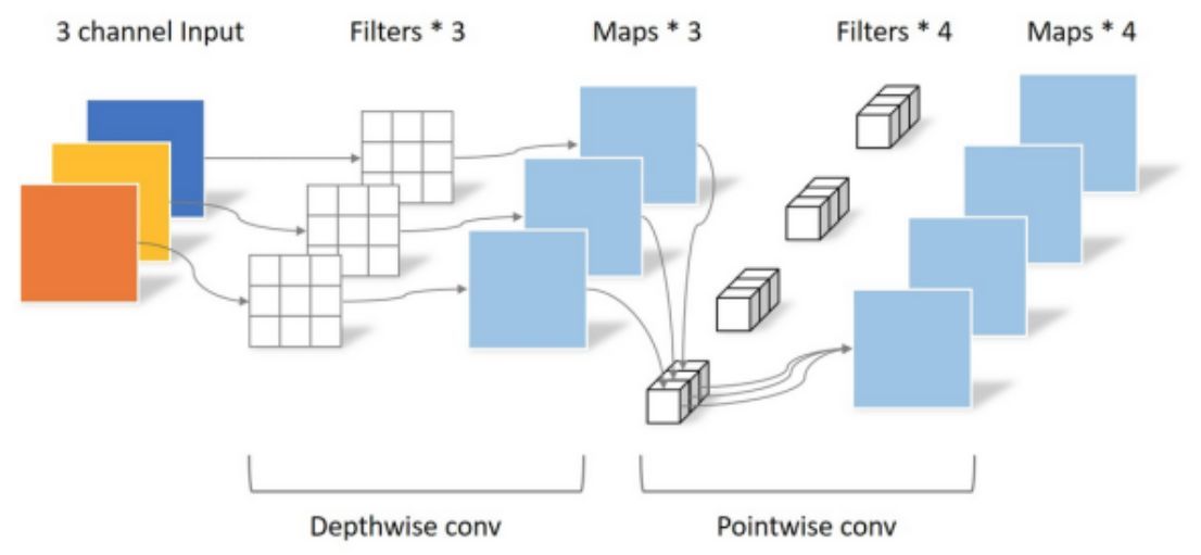 深度可分离卷积的思想是先用 (输入通道数)的分组卷积逐通道作用融合空间信息,再用n(输出通道数)个1乘1卷积融合通道信息。