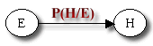 假设节点 E 直接影响到节点 H ,即 E → H ,则用从 E 指向 H 的箭头建立结点 E 到结点 H 的有向弧 (E, H) ,权值(即连接强度)用条件概率 P(H|E) 来表示,如下图所示: