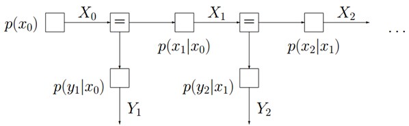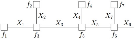 再比如,对于下图所示的由马尔科夫链转换而成的因子图: