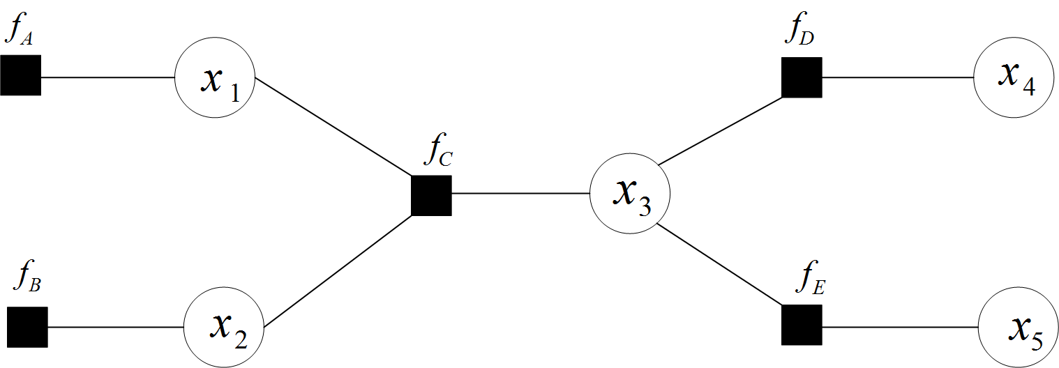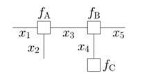 f(x1, x2, x3, x4, x5) = fA(x1, x2, x3)fB(x3, x4, x5)fC(x4)