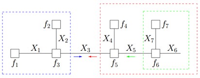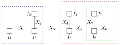 f̄3(x3) = (∑x1, x2f1(x1)f2(x2)f3(x1, x2, x3))(∑x4, x5f4(x4)f5(x3, x4, x5)(∑x6, x7f6(x5, x6, x7)f7(x7)))