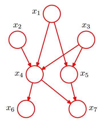 P(x1)P(x2)P(x3)P(x4|x1, x2, x3)P(x5|x1, x3)P(x6|x4)P(x7|x4, x5)