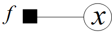 - 另外一种是函数(Function)到变量(Variable)的消息: mf → x , 此时,函数到变量的消息为: mf → x = f(x) ,如下图所示: