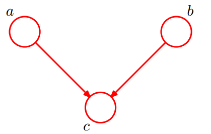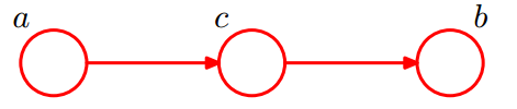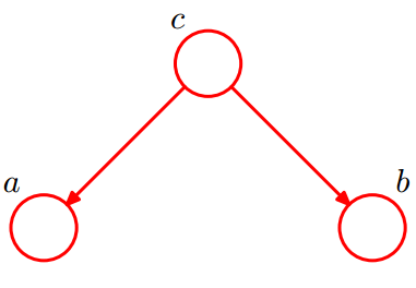 此时,没法得出 P(a, b) = P(a)P(b) ,即 c 未知时,a, b 不独立。