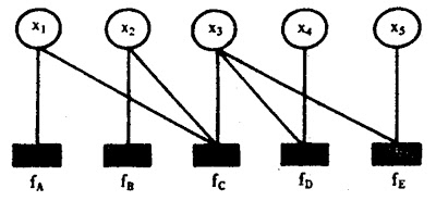 g(x1, x2, x3, x4, x5) = fA(x1)fB(x2)fC(x1, x2, x3)fD(x3, x4)fE(x3, x5)