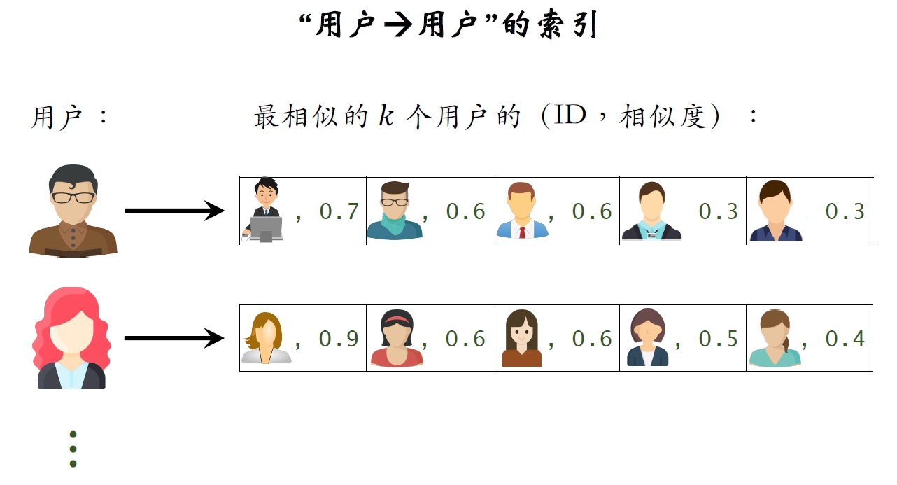 个⽤户。 - 给定任意⽤户ID,可以快速找到他最相似的