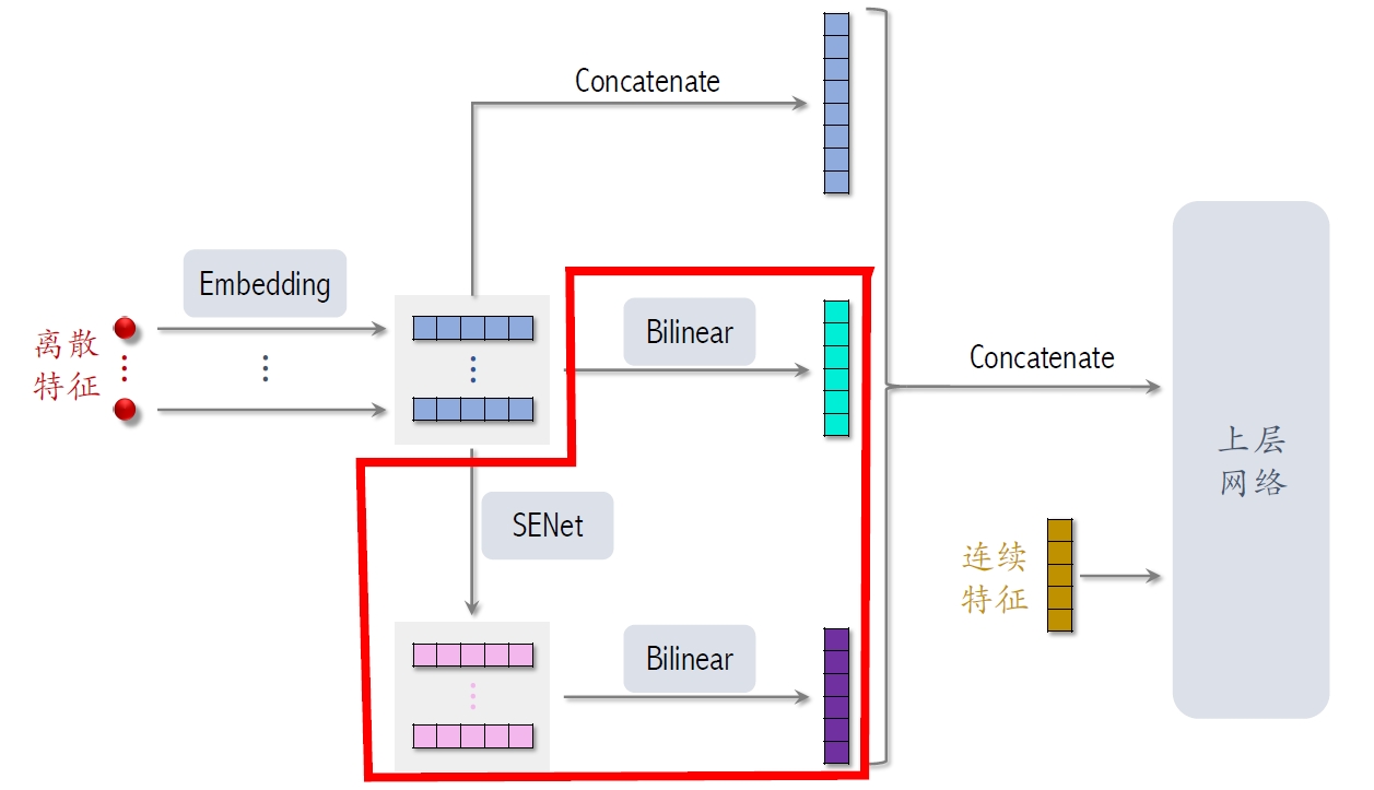FiBiNet 是将 SENet 与 Bilinear 模型结合。