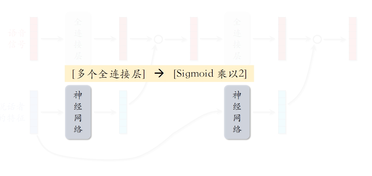 - 说话者网络包含多个全连接层,最后一层的sigmoid乘以2