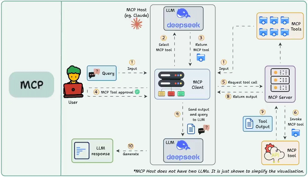 - 例如,Agent 可通过 MCP 查询 SQL 数据库或调用支付系统完成交易。
