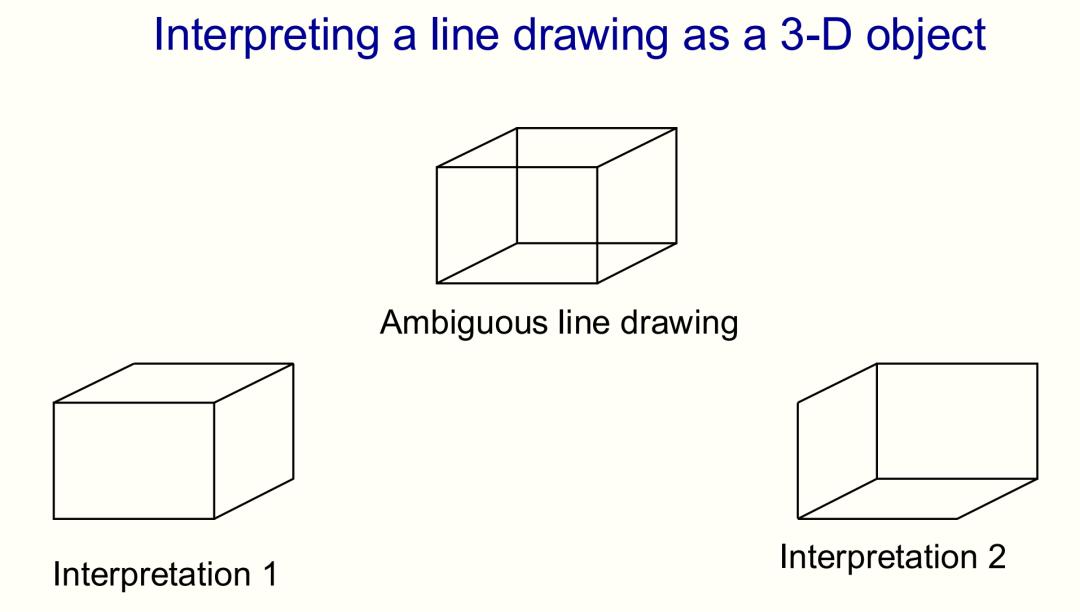 Hinton以一幅经典的模棱两可的线条画——内克尔立方体(Necker cube)为例,展示了网络如何处理视觉信息的复杂性。如下这幅画,有的人会将其看作是「凸面体」,有的人会看到的是「凹面体」。