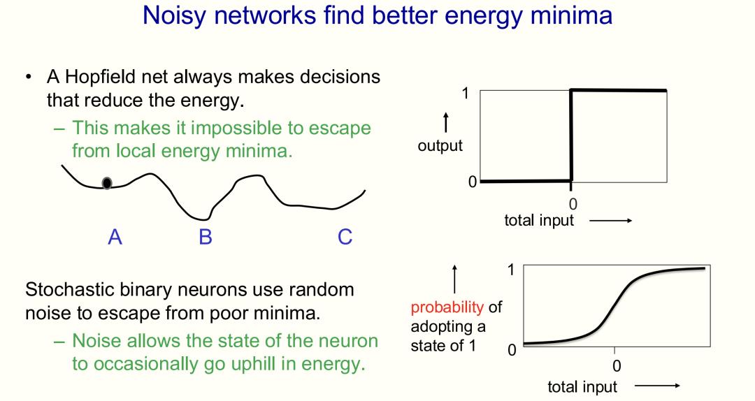 对于「搜索问题」,最基本的解决方法——引入带有噪声的神经元,即「随机二进制神经元」。这些神经元状态为「二进制」(要么是1,要么是0),但其决策具有很强的概率性。