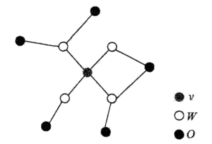 局部马尔科夫性:设 v 是无向图 G 中任意一个结点, W 是与 v 有边连接的所有结点, O 是 v, W 以外的其他所有结点。 v 表示的随机变量是 Yv, W 表示的随机变量组是 YW, O 表示的随机变量组是 YO .局部马尔科夫性是指在给定随机变量组 YW 的条件下随机变量 Yv 与随机变量组 YO 是独立的,即