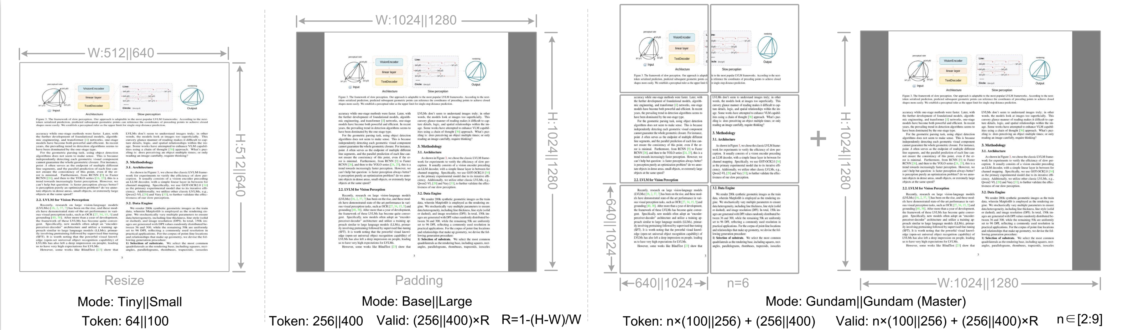- Gundam模式:n × 640 × 640 tile(局部视图) + 1024 × 1024 全局视图组成