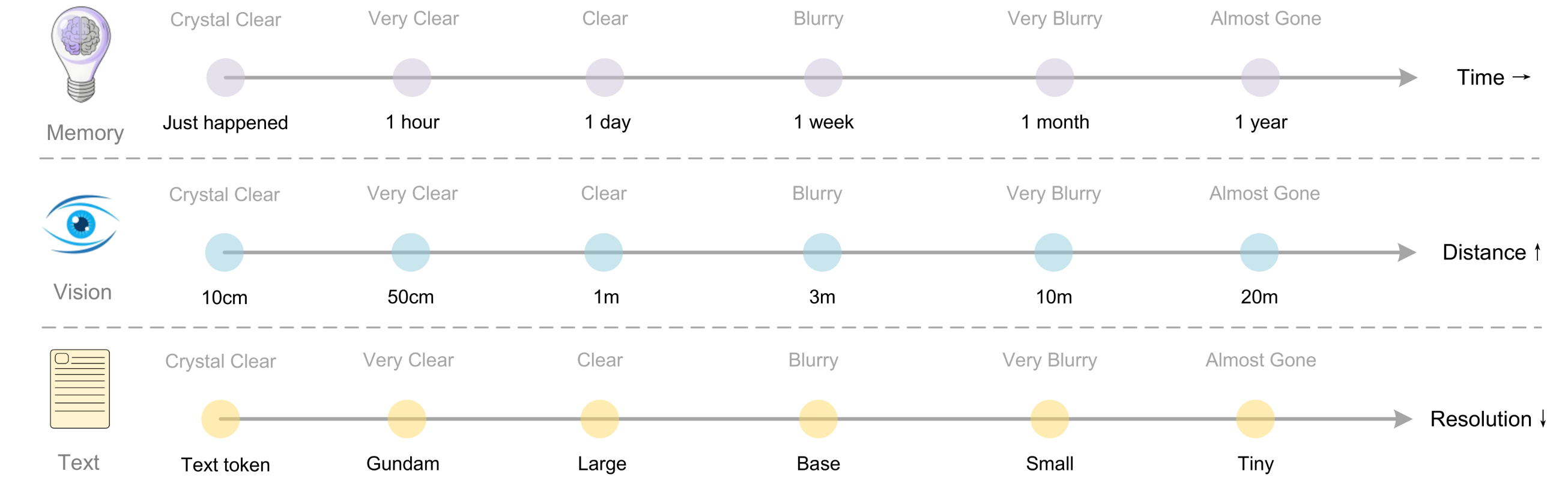 论文提出了一个有趣的想法:通过光学压缩模拟人类记忆的遗忘机制。
